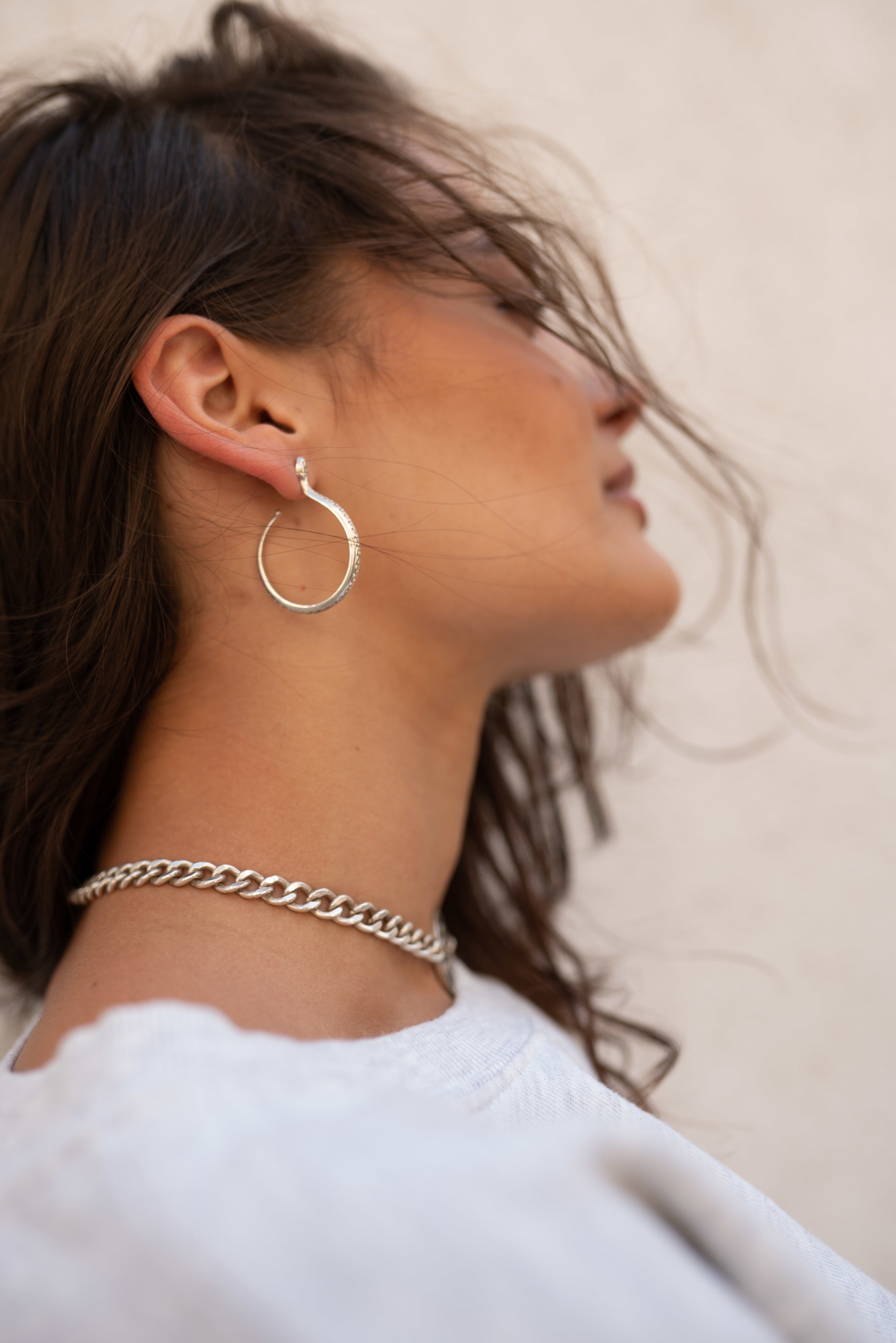 The duality of Sarpe Hoops extends beyond symbolism: they’re basic and yet refined. Designed to be worn from day to night. Cool but feminine. Timeless and contemporary at once. Extremely lightweight, they have been handmade from the highest quality 925 silver and are available in pure silver or gold plated with 24 carat gold. You’ll have endless options wearing them and you’ll simply want to live in those beauties.
